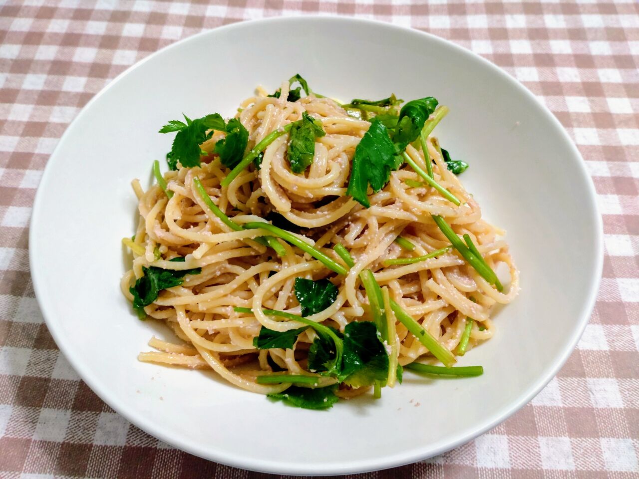 三つ葉たっぷりのたらこパスタ